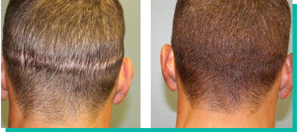 Las cicatrices causadas por transplante capilar, accidentes o cicatrices de nacimiento, podrán ser camufladas con nuestro tratamiento.